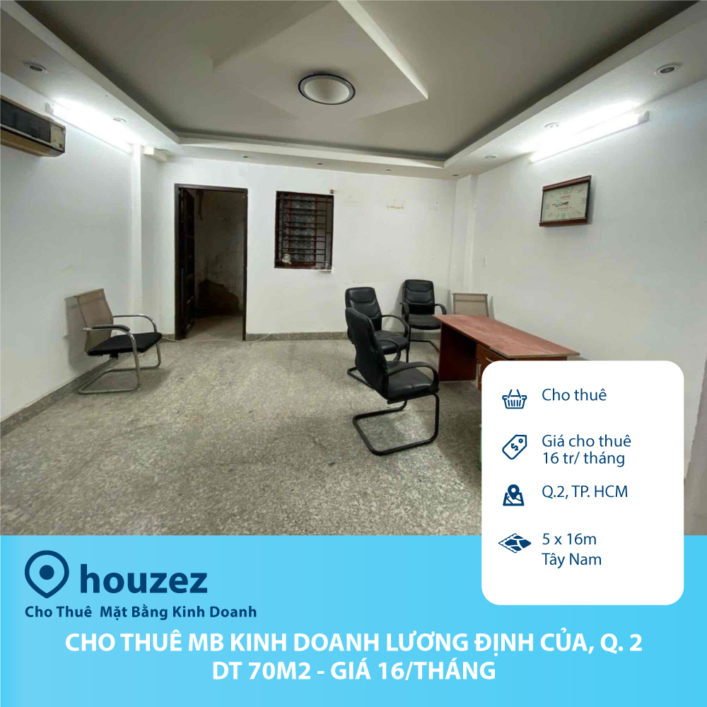 Cho thuê MB kinh doanh Lương Định Của, Q. 2 – DT70m2 – Giá 16tr/ tháng
